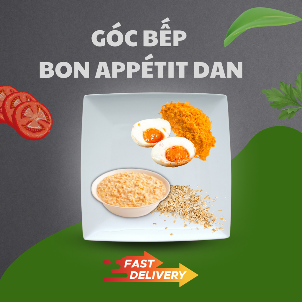 Chào mừng đến với Góc bếp Bon Appétit Dan! Hôm nay, chúng tôi xin giới thiệu đến bạn món Cháo Yến Mạch Chà Bông, Trứng Muối thơm ngon và bổ dưỡng.