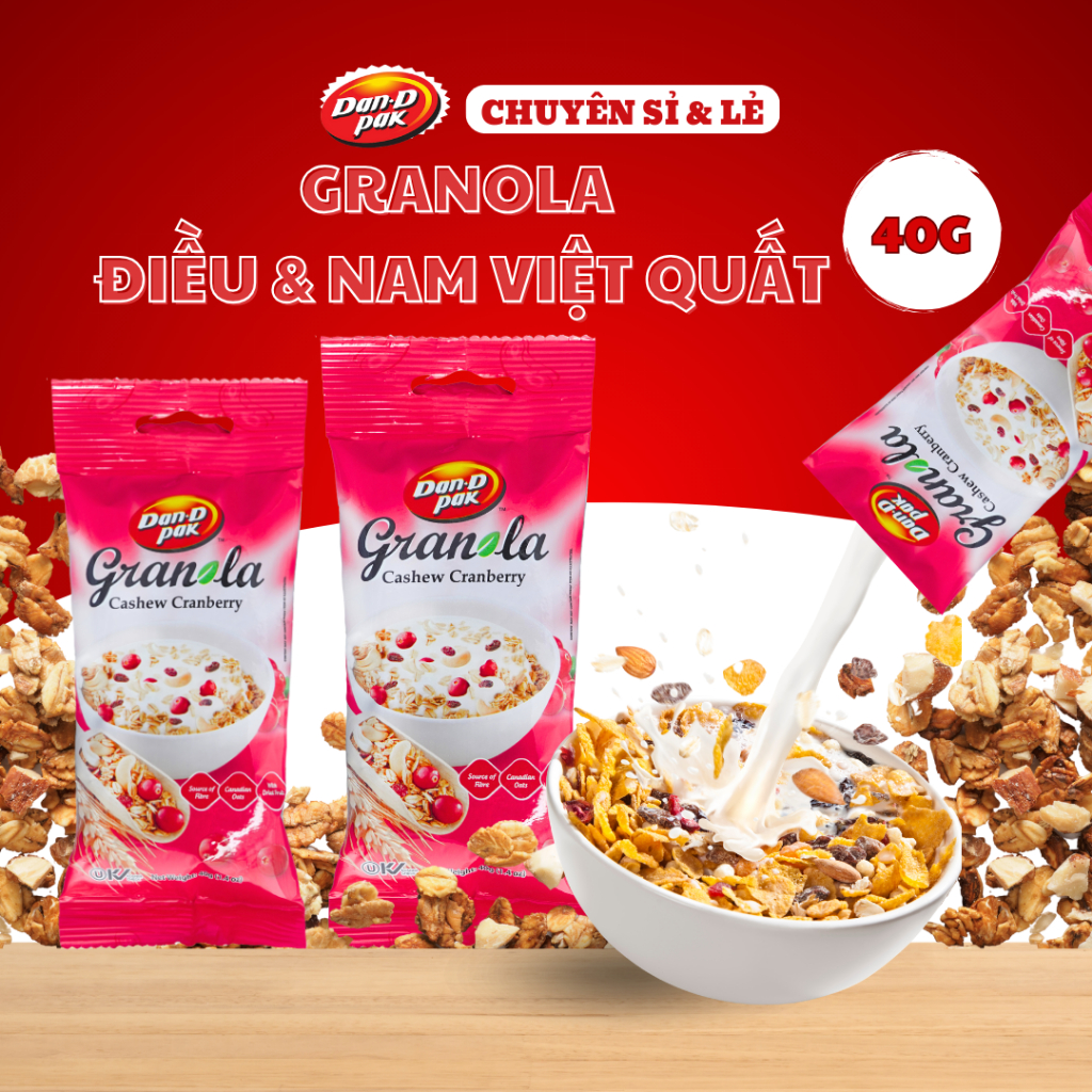 + Thành phần: Yến mạch, cốm gạo, đường,điều, nam việt quất mật ong, dầu thực vật, dừa, mạch nha...